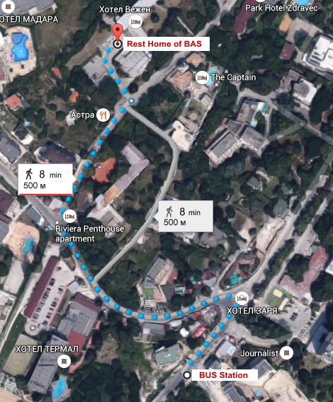 The hotel are 5 to 10 minute drive from the School & Symposium venue; public bus transport is also available. Access to the hotel is facilitated by good bus connections from the airport, bus station, railway station and the centre of Varna.
